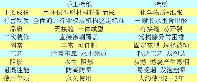 手工壁紙通過純手工打造,在不同的生活區域與不同的家具、配飾相搭配,清新、環保,充滿著浪漫迷人的色彩,表面細膩光滑 色彩純真、視覺舒坦、感觸柔和、吸引透氣、親和性佳,典雅高貴!它具有環保、防霉、抗菌、耐擦洗的優點,使用壽命長;是當前家居裝飾墻面的首選材料。